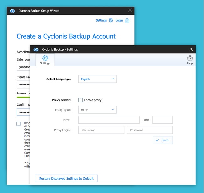 Creating a Cyclonis Backup Account