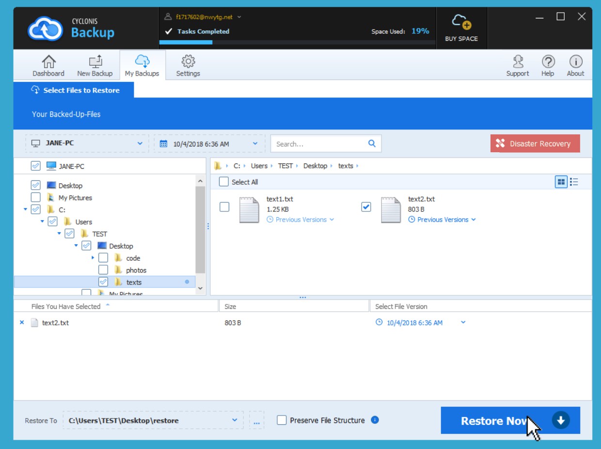 - Once you have selected the files and folders (and any specific versions) to restore, click Restore Now to start the restore operation.