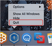 - Right-click the Cyclonis Password Manager logo in the Dock and select Quit.