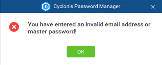 If you exit Cyclonis Password Manager, when you restart the app, you will need to enter your registered email address and password to log in (unless you have opted in Settings for Cyclonis Password Manager to remember your password).