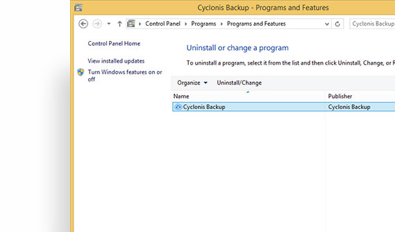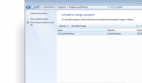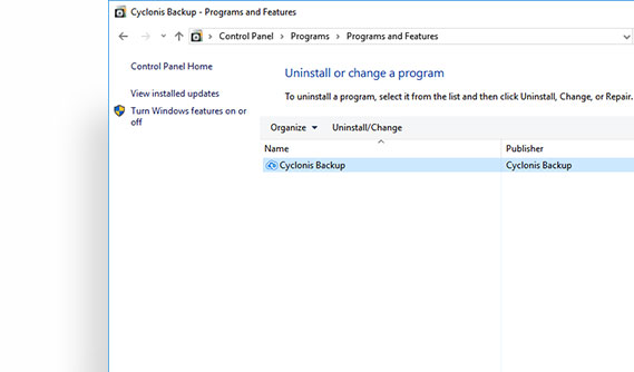Select Cyclonis Backup from the list and click on the Uninstall button.