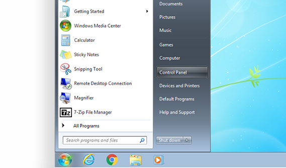 Locate and open the Control Panel.