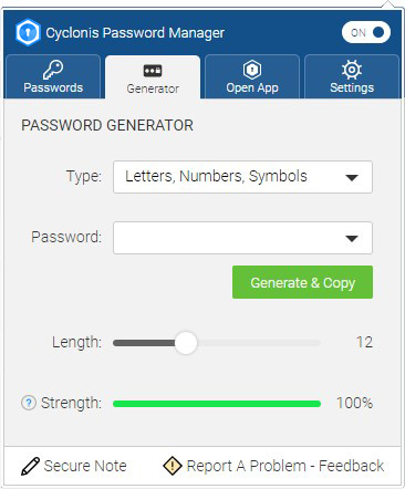 Although saving your passwords inside a browser is convenient, Cyclonis Password Manager is a dedicated password management application that employs a number of advanced mechanisms. The same can not be said about all browsers. Cyclonis Password Manager's AES-256 encryption and its optional two-factor authentication feature, for example, help to keep your data encrypted and strengthen your vault. Not all browsers give you the option of generating unique passwords for each and every one of your accounts.