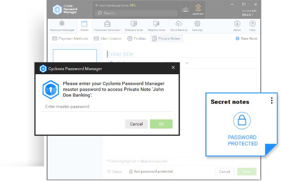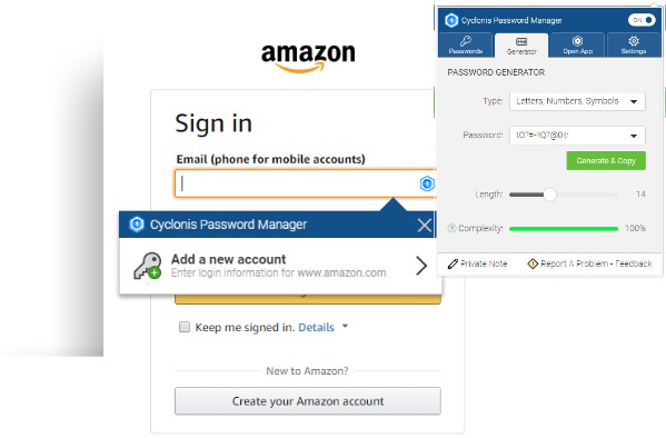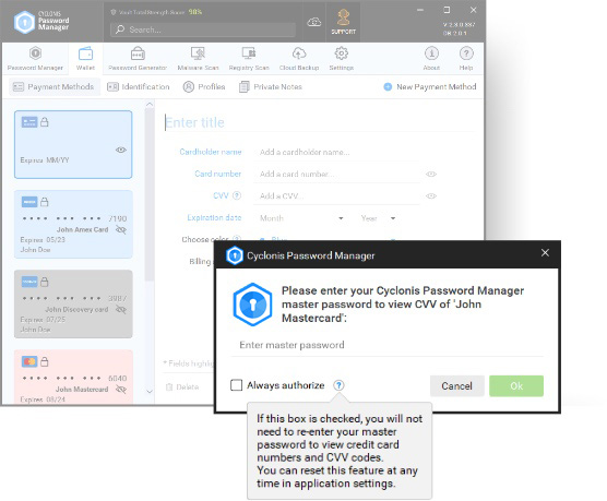credit card or personal profile you want to use, and Cyclonis Password Manager