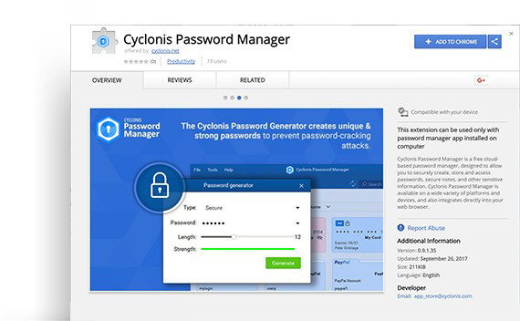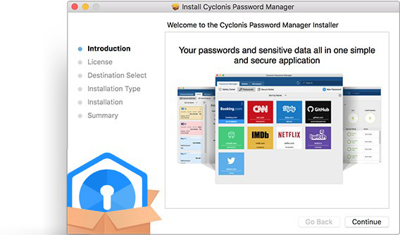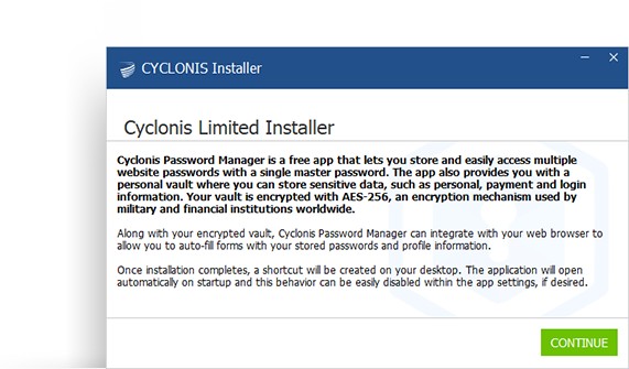 A window that gives you some information about the Cyclonis Password Manager and its features will appear.