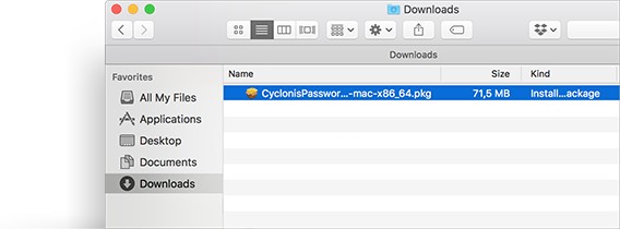 Open the download location of Cyclonis Password Manager’s CyclonisPasswordManager-Installer.pkg file.