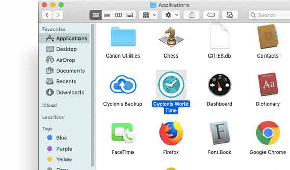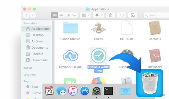 Drag the Cyclonis World Time application to the Trash