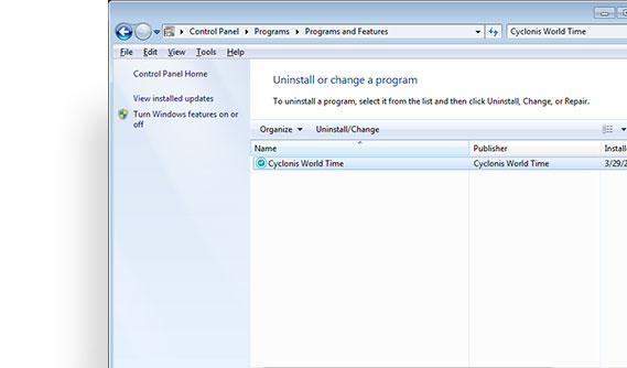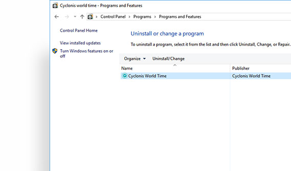 Select Cyclonis World Time from the list and click on the Uninstall button.
