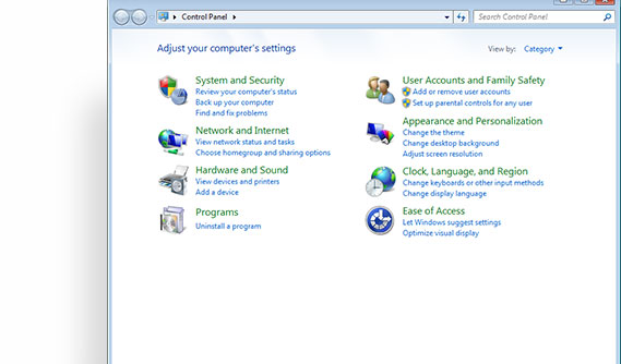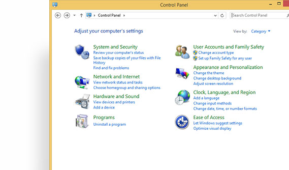Locate and open the Control Panel.