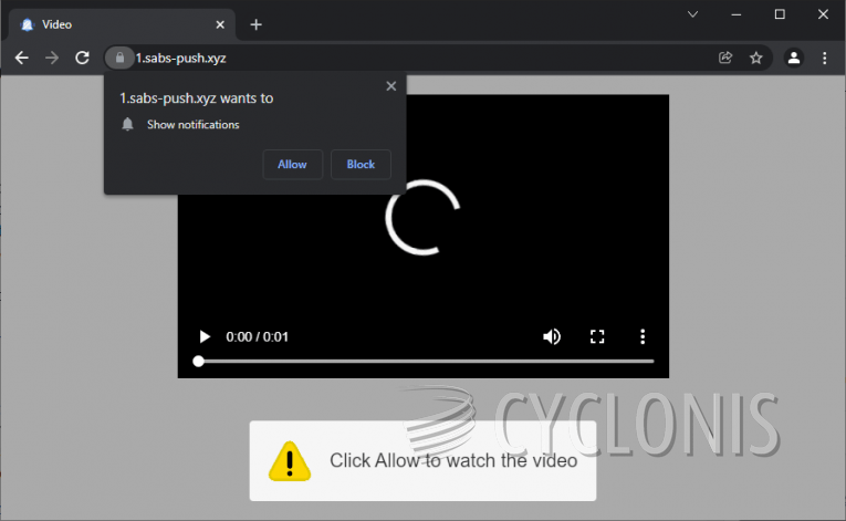 Sabs-push.xyz is a fake website that wants to get access to your browser notifications. Of course, it needs you to interact with it in a specific way in order to get these permissions. Surprisingly, the trick is quite simple – all it needs to do is to get you to click 'Allow' on a prompt you see when you open the site. Often, sites like Sabs-push.xyz may say that you should click 'Allow' to view a video, unlock other media, or even to confirm that you are not a robot. Whenever you encounter a site asking you to do such a thing, you should proceed with caution.