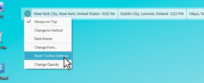 如果要將所有Cyclonis世界時間的桌面小部件設置重置為其默認狀態,可以單擊 “還原工具欄設置” 。