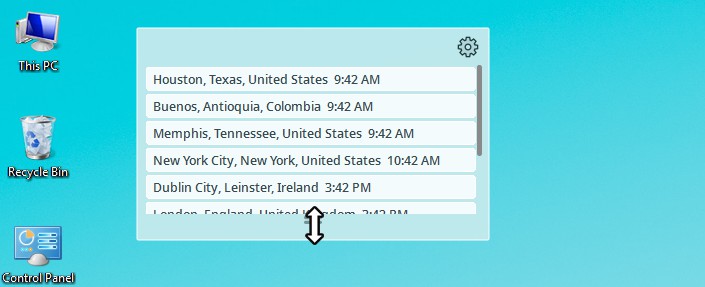 如果要跟踪多個時區,則可以使用 “調整大小” 滑塊來展開和收縮桌面小部件。注意:如果小部件已簽約,您仍可以滾動列表,但可能無法一次查看所有位置。